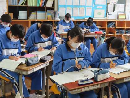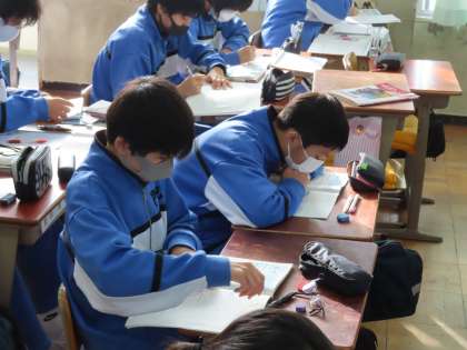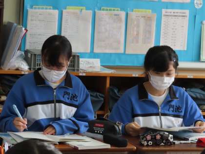 3Cは数学です。いつもの数学独自の机の並び方です。教え会いながら問題を解いていました。