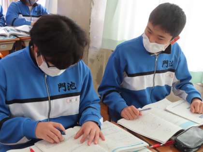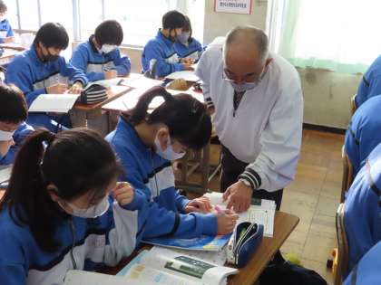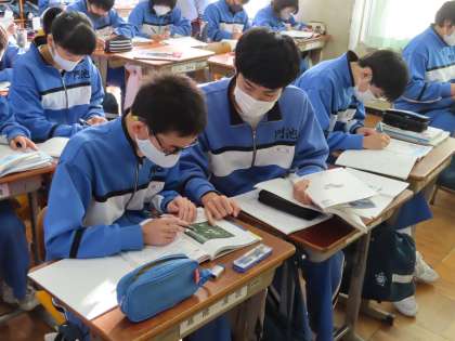「円」についての授業です。円周角と中心角です。円周角の定理を使っての問題にトライしていました。