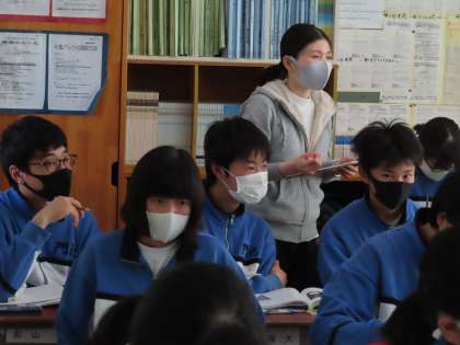 3B歯数学です。デジタル教科書をモニターで確認しながら授業に入っていきます。山開さんもサポートに入っていただいています。