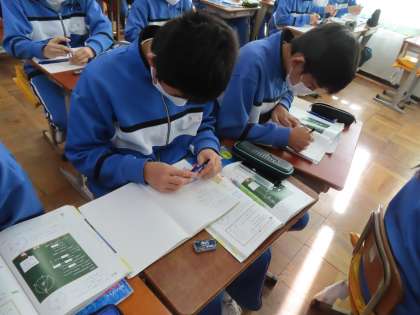 3年生は「円」に入っています。円周角と中心角を定理を使って問題にチャレンジしています。