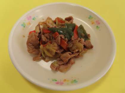 少しニンニクが効いた「回鍋肉(ホイコーロー)」でした。肉と野菜(キャベツ)がオイスターソースでまとまっています。ごはんがすすみます。