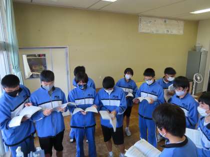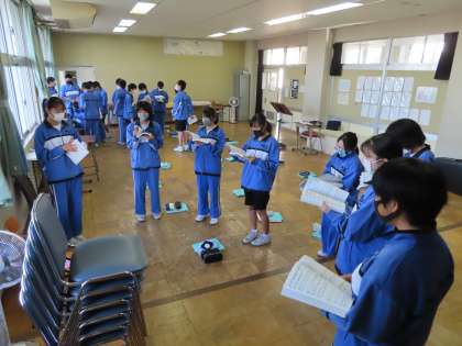2Bは音楽でした。歌を聴いてからパート別になって練習が始まります。曲名は「空は今」と言います。