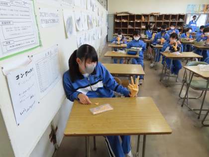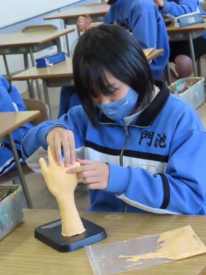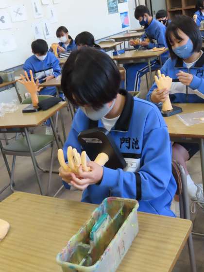2Cの美術は自分の手を粘土で作っていました。いろんなポーズがあって楽しいです。