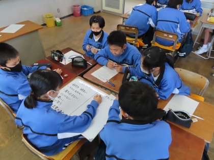 1Cの道徳は吉田先生が行って行っていました。ポジティブとネガティブについて考えていきました。プラス思考の考え、マイナス思考の考えなどたくさん出てきましたが、最後はホワイトボードに書き込み発表していきました。