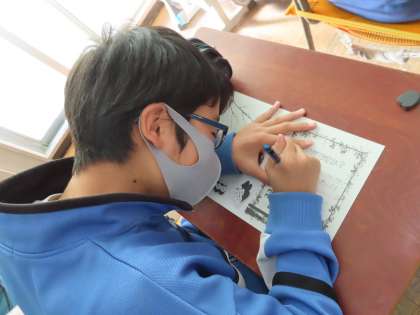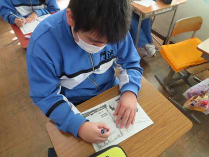 2年生は地域のお年寄りに手紙を書こうの授業です。まだ下書きですが心のこもった手紙となるでしょう。