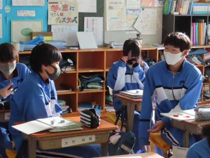 3Cの社会は公民の授業です。「経済とはどのようなものか」考えていました。お金と直結する話です。貯金や株の話、収入と支出の話など切実な話が多かったです。回りとよく会話をして意見をまとめていました。