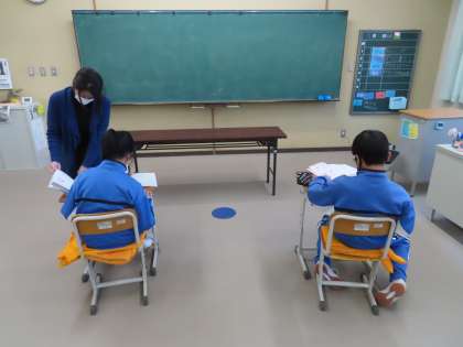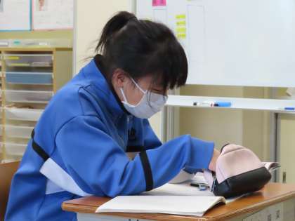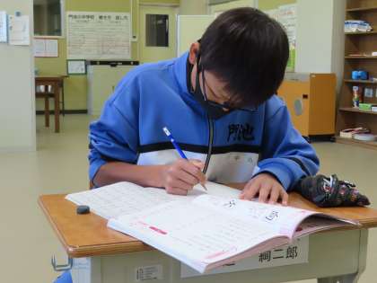 I組は国語の授業です。「正しく書こう」を目標に漢字書き取りをしていました。集中しているためカメラを向けても気づきませんでした。