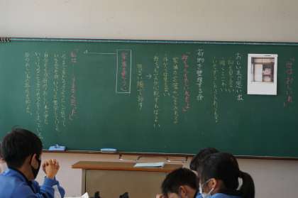 1Cの道徳は、明るい家庭をつくるために、ということで「押し入れの思い出」という資料を使っています。荷物を整理する母が「母ちゃんも押し入れだよ」と言った真意は何かを考えていきます。「家族の言葉や心を入れる」「家族の抱える悩みは押し入れに入れておけば外から見えない」などの意見が出されています。最後に明るい家庭をつくるためにできることを話し合っています。