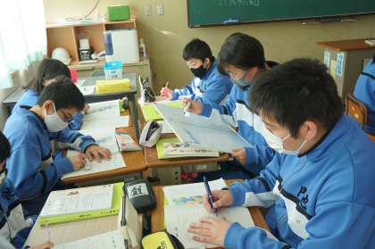 1Aは「席替え」という資料を使っています。なぜ「私」は席替えの再提案に迷っているのかを考えています。「反感を買う」などの理由で再提案を迷っていたが、学級委員長としてそれでもやろうとしたのはクラスに対するどんな思いがあったからなのでしょう。