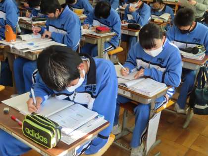 3Bは理科の授業です。単元末問題へのチャレンジをしていました。静かに自分の課題に取り組んでいます。