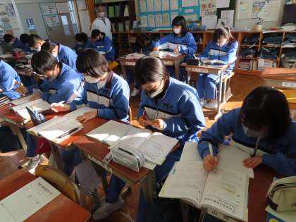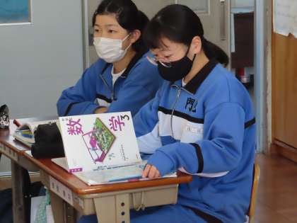 3Cは数学です。隣同士で教え合いながらの学習スタイルです。問題につまると隣に聞きながら学習を進めていきます。