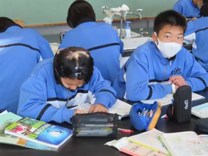 1Cの理科は学習書を進めていました。一部休み中の宿題になっています。少しでも進めておきたいですね。