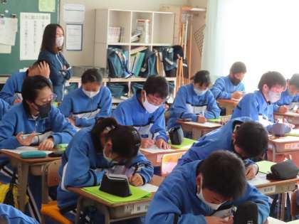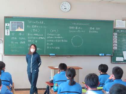 2時間目に道徳をしていました。授業変更があったようです。「ぼくらの村の未来」の学習です。村に道路を作ることになった。賛成か反対かで意見をぶつけました。そこから村の大切なものを考えます。最後には「自分にとって目に見える大切な物とは?」を考えていきました。