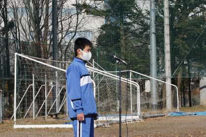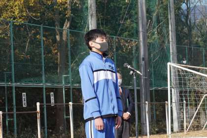 各学年の代表が2学期の反省を話します。1年生は渓流祭や遠足、学習や部活動について、2年生は自然教室が実施できたことへの感謝と学習書の取り組みについて、3年生は最後の渓流祭に向けた思いと、それぞれの進路に向けて努力することについての話でした。