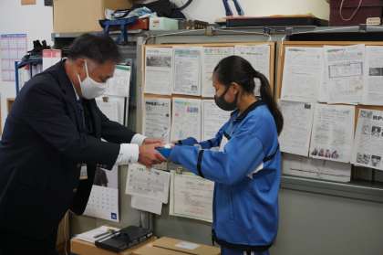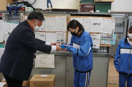 例年元旦歩こう会で表彰している池っ子奨励賞ですが、今年は新型コロナウイルス感染防止のため、日を変えて学校で表彰を行いました。中体連の水泳県大会で活躍し、入賞した生徒と、夏休みの自由研究で、県学生科学賞の県科学教育振興委員会賞を受賞した生徒を表彰しました。