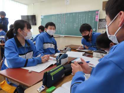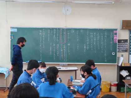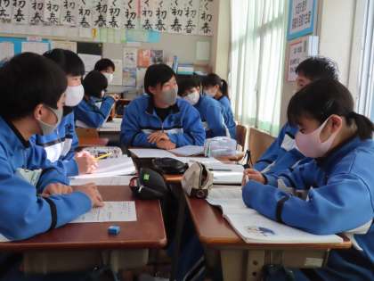 3Cは「家族の支えがあるから…背筋を伸ばして」の授業です。小さな頃からクリーニング屋さんの父の姿を見てきて「かっこいい」と感じていた主人公。大きくなるにつれ変わってく「夢」その夢に対しての父の思いなどの葛藤がある話です。家族のことを思いやるから悩んでしまう・・・。今の受験生としての自分のことを、親はどう思っているのだろう。と思いをめぐらせていました。