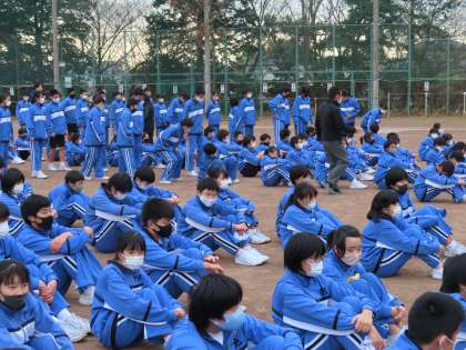放送が入ってから、それぞれの場所からグランドに避難してきて、学級ごとに並び人員点呼が終了するまで4分21秒です。生徒が整列したのが2分50秒くらいでした。とても速く避難することができ、びっくりしました。おしゃべりもあまりなく走ってきました。無言で並ぶことが出来れば100点になります。非常時にはしゃべらない!このことをしっかり守っていきましょう。素晴らしい避難訓練となりました。