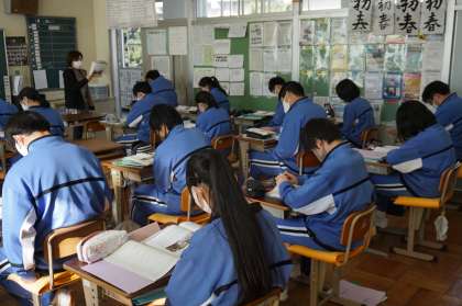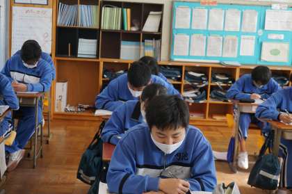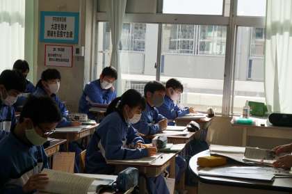 3Cは英語です。マララさんに関する内容の単元です。単語の意味を確認した後に、ヒアリングを行いました。普通の会話のレベルのスピードなので、かなり早いです。しかし、しっかり聴こうとしています。