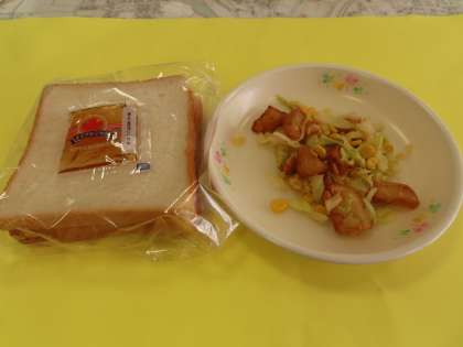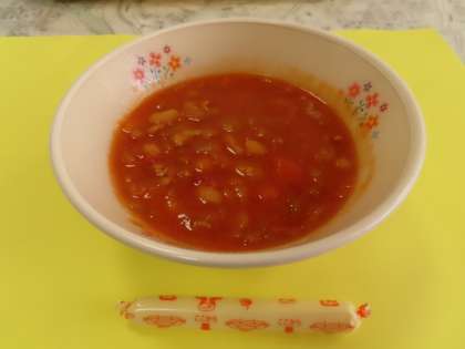 トマト味のポークビーンズ、具材がたくさん入っていました。豆は軟らかく煮てあり味付けもちょうど良かったです。おかずがたくさんあって満足でした。ごちそうさまでした。