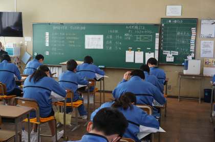 県の学力調査です。1年生はこれまで学んだことを振り返る意味でとても大切なテストです。問題をしっかり読み、何を問われているのかしっかり確認する必要があります。最後まで頑張ってください。