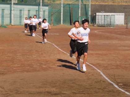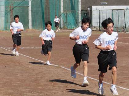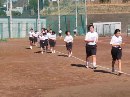 3時間目グランドで体育を行っていたので見学に行きました。1Aが持久走を行っていました。20分間走でした。速い生徒は3000m以上走るそうです。今日はどのくらい走ったのでしょう?