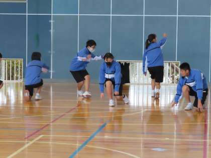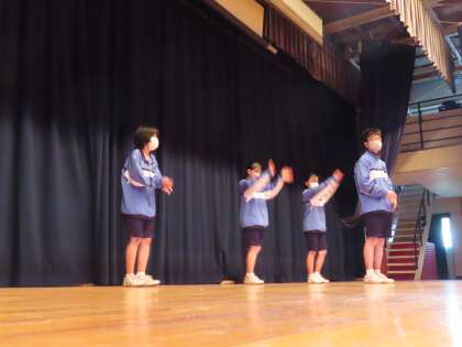 今日はダンスの総まとめ、発表会です。最終練習を行っていました。順番にステージ上でも練習をしていました。