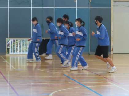 班の中で意見を出し合い動きを考えてきました。そろった動きや一人一人の違った動きなど工夫された流れとなっています。