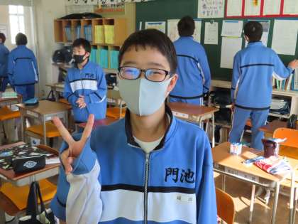 マスクはしてますがしっかり「ピース」をしてくれました。