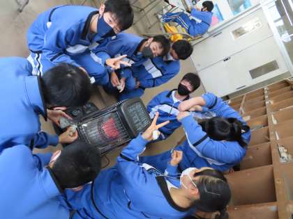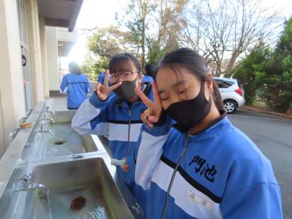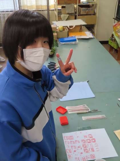3Bの美術は篆刻の仕上げに入っている様でした。水道では防水のやすりで磨いていました。手が冷たくなるとストーブのところで手を温めます。
