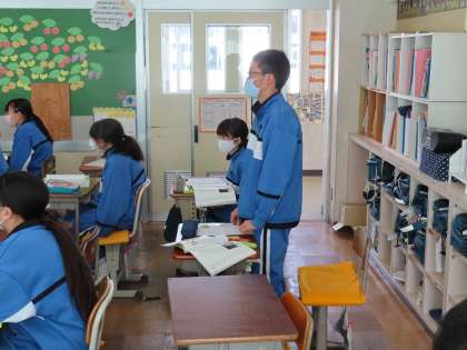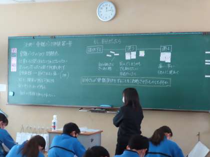 1Bの道徳は栗田先生です。Bは移植すると答えた生徒は1/3くらいでした。自分が障害を負ったり、死んでしまうかも知れないことを考えると「怖い」「痛い」「しかし助けたい」「断ったら罪悪感に襲われそう」などの意見が出てきました。