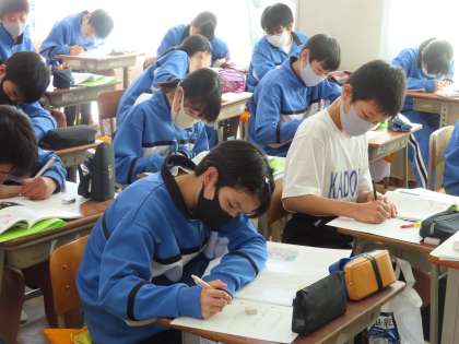 1Cの道徳は伊藤先生です。1Cでも移植する・市内の差は1/3と2/3の差でした。病気の命を助けられるのは自分だけとなったときどうするのか。しかし、痛い、怖いなどの理由で移植をしない生徒が多かったです。ここからどのように気持ちが変わっていくのでしょう。