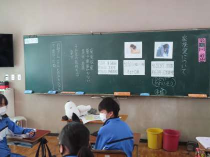 愛についての授業です。山本先生のオリジナル授業です。いろんな「愛」の形がありますが、この授業では「家族愛」について考えていきます。養子縁組、不妊治療、児童養護施設などを理解できる生徒が比較的多くいました。少しずつ社会勉強をしています。