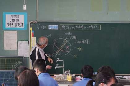 2Bは理科です。電流が作る磁界についての学習です。地球自体が大きな磁石になっていることから、方位磁針が北を示すことを学んでいます。