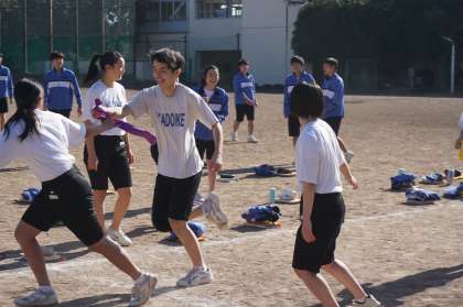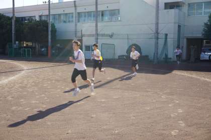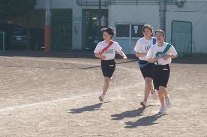 3Bは保体です。駅伝をやっていました。1000m、1500mのタイムを元にチーム分けをしたので、タイム差は3秒しかないそうです。第1走者が帰ってきました。