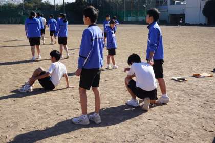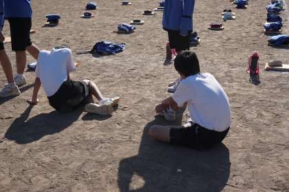 走り終わった生徒は座り込んでいます。全力を出し切ったからでしょう。応援の声も大きくなっています。