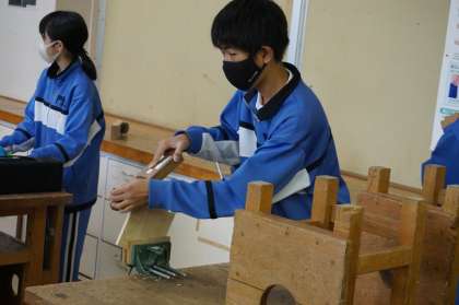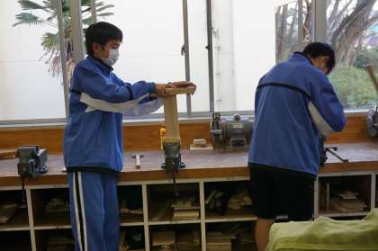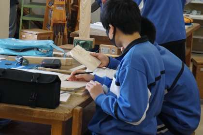1Cは技術です。本棚の作成を進めています。道具を使って切り出した部品にかんなをかけて仕上げる生徒が多くなってきました。