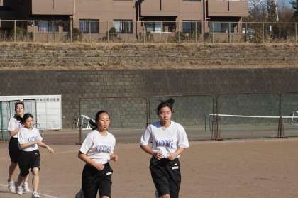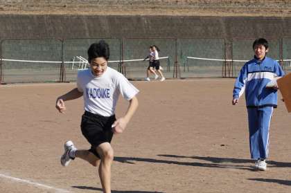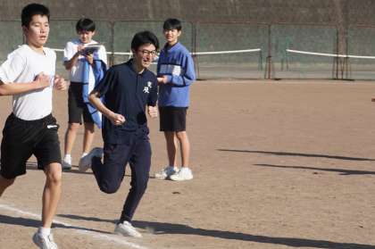 どの生徒も今までの最高記録を出そうと精一杯走っています。先頭の生徒は3分1桁台を出すことを目標にしていました。精一杯走り、何とか目標を達成しました。遠藤先生もとてもいいタイムを出しました。女子の先頭は4分ジャストでした。