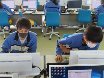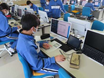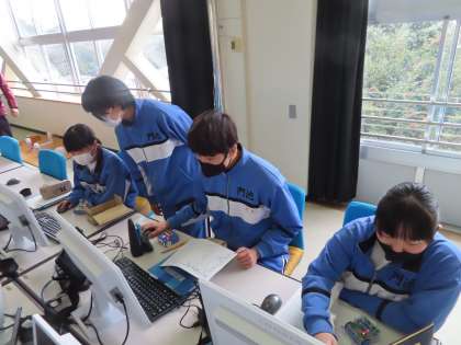 制御学習プロロボUSBプラスを使ってプログラミング作業を行っていました。コースを無事に通過して出口にいけるようなプログラムをしています。