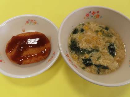 しっかり味がついていておいしかったです。コーンとたまごのスープはそれぞれの味をしっかり感じ取ることができました。コロッケは大豆の間食もなく普通のコロッケと間違えてしまいそうでした。ごちそうさまでした。