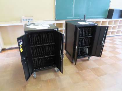 2年C・D組用の充電保管庫のセット終了しました。2階の教室用は完了です。