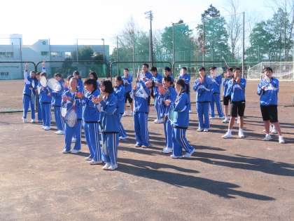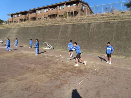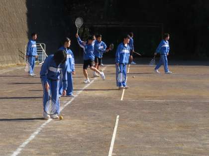 見事な部員の打ち方に拍手喝采でした。その後は自由にテニス部のように打ってみます。上手にラケットにあたりません。