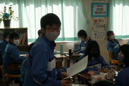 2Bは「おおきな木」という資料を使っています。少年と木のやりとりの中で、少年はお金が欲しいと木に言います。すると木は、リンゴを取ってそれを売りなさいと言いました。それに対してどう思うか考えています。また、家がほしいと言った少年に対して、木はどうするのか、この後のストーリーを考えていきます。