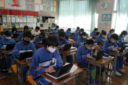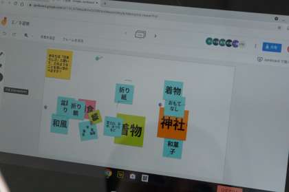 2Aは日本の伝統文化について考えていきます。GoogleのJamboardを使って、自分の意見を付箋に書き込み、友だちの意見と見比べていきます。日本の伝統文化の素晴らしさを普段、どのように感じているのでしょう。