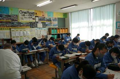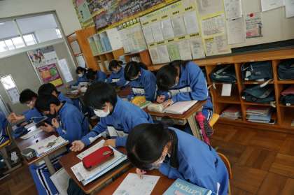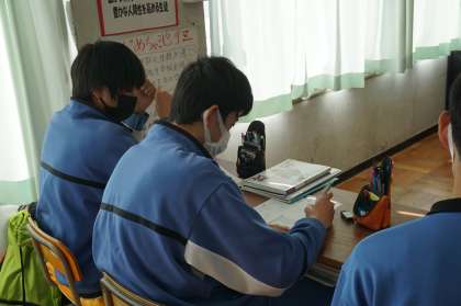 三平方の定理を利用する問題を解いています。真剣な表情です。質問の手がよく挙がります。