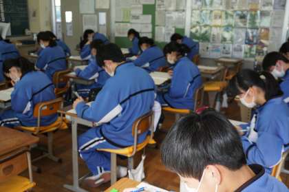 3Cは国語の問題を解いています。真剣に取り組んでいます。