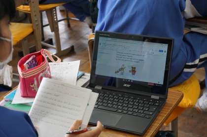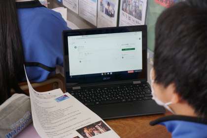 3Cは英語です。Chromebookを使って問題を配付し、それに取り組んでいます。英文は打ち込みやすいようですね。