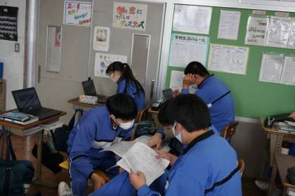 3Aは理科です。Chromebookを使い、google classroomを使ってプリントを配布し、その問題を解いています。図もカラーで見やすいことや印刷の手間も省けます。