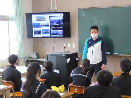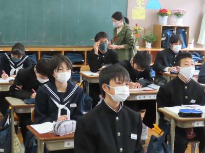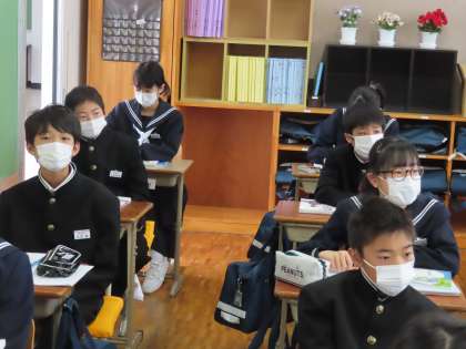 1Dは数学の授業でした、世界地図から都市の名前や気温などの映像を見ていました。気温の表示でマイナスが出てきました。数学の授業にいきなり戻ります。「マイナス」ってどういうこと?と質問が出されました。自分の考えをノートに書いていました。支援員さんの山開さんも一緒に授業を受けています。
