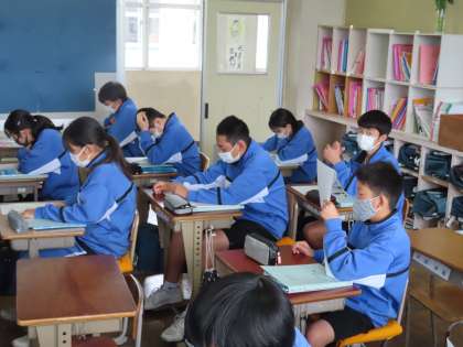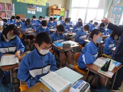 2Bの英語は鈴木浩光先生です。「Let IT BE」の英語版を読んでいます。次からは、曲とともに歌うのではないでしょうか。早く覚えてください。
