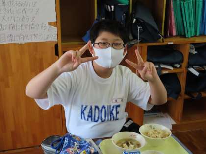 カメラを向けると「ピース」をしてくれる1年生が多くなってきました。とてもうれしいです。ピースをしている人のマスクの下はきっと笑顔になっているでしょう。